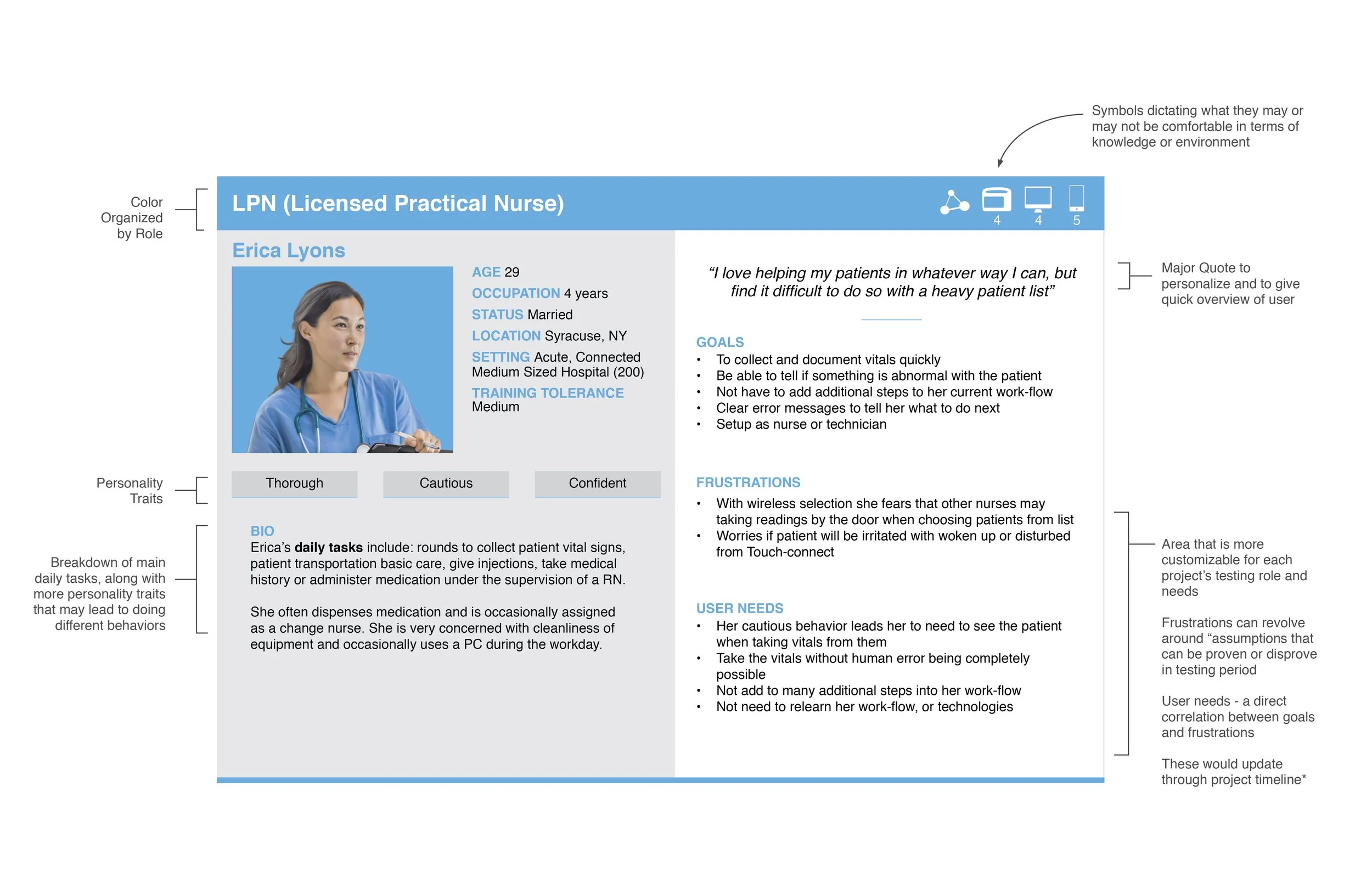 Updating information across our medical personas that work, interact, and are the customers of our products and experiences. Working through both existing materials, conversations with experts, and users to understand what has changed over the years since the last persona deck.